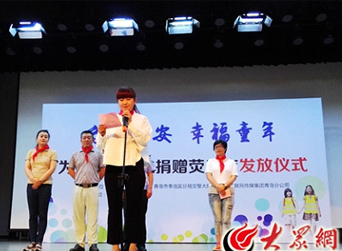 Qingdao City Network Culture Management Office, Qingdao Municipal Public Security Bureau, Qingdao Municipal Education Bureau, Communist Youth League Qingdao Municipal Party Committee, Shandong Province Internet Media Group jointly launched the "guardian of peace and happiness of childhood - for Qingdao Primary school students donated fluorescent clothing "large-scale public welfare activities into the Qingdao City Licang District Experimental Primary School by the Qingdao Municipal Office of spiritual civilization construction in this morning, the school students free of charge issued more than 1,600 pieces of fluorescent clothing.
