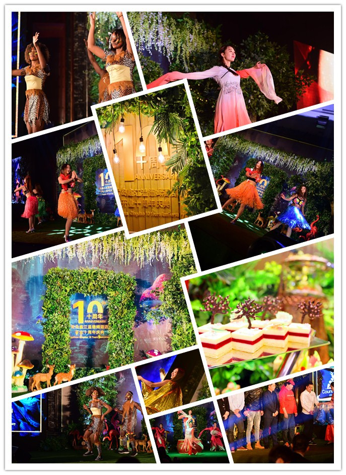 慶典活動當晚“叢林”主題的裝飾及茶歇給人耳目一新的視聽感受,象征著酒店綠色健康、天然原生的美食以及熱情本真的服務團隊。而晚宴則以“感恩、懷舊、展望”三個篇章呈現,十年的陪伴與相守,十年的收獲與成長,所有情結都匯聚在精心錄制的視頻以及傾情打造的盛宴和演出當中。