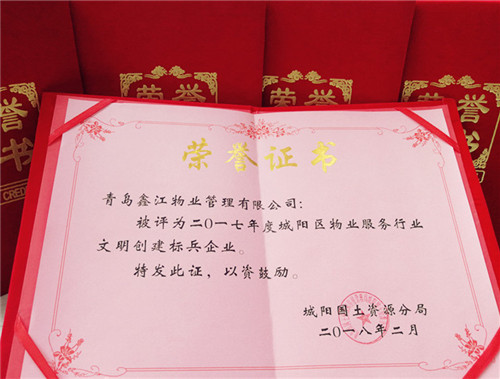 2018年2月9日上午,青島市城陽區國土分局城陽區物業辦召開了“年終總結和表彰大會”,青島鑫江物業管理有限公司以優異的成績脫穎而出,一舉斬獲“行業文明創建標兵企業”、“行業文明創建示范項目”、“行業文明創建服務明星”三項大獎,充分彰顯了其卓越的企業品牌實力與價值!