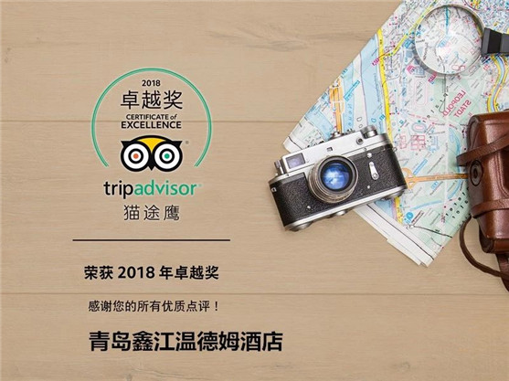 青島鑫江溫德姆酒店近日再次獲得全球最大旅游點評網——貓途鷹(TripAdvisor中文官方網站)頒發的“2018年度卓越獎”和《SPLENDEUR赫》雜志主辦的“2018年度第五屆中國區旅游勝地城市高端酒店金榜”頒發的最佳卓越服務商務酒店