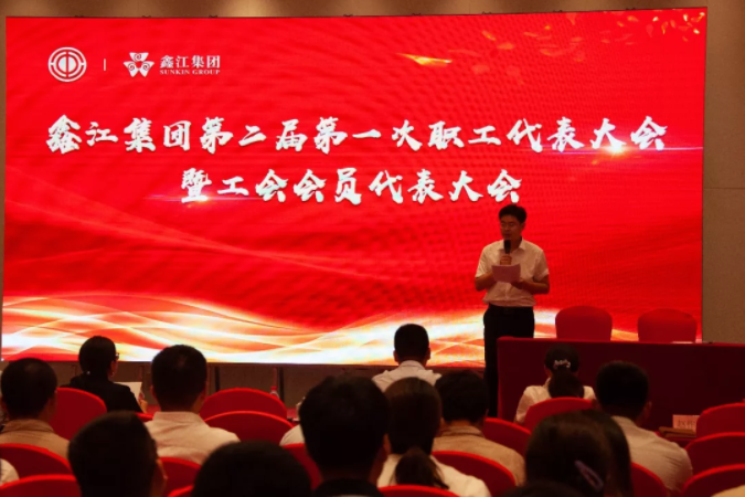 2019年7月24日下午,鑫江集團第二屆第一次職工代表大會在鑫江溫德姆酒店花園廳隆重召開,來自集團及各子公司職工代表共102人參與了本次會議,大會的執行主席為鑫江集團工會主席王曉磊。
