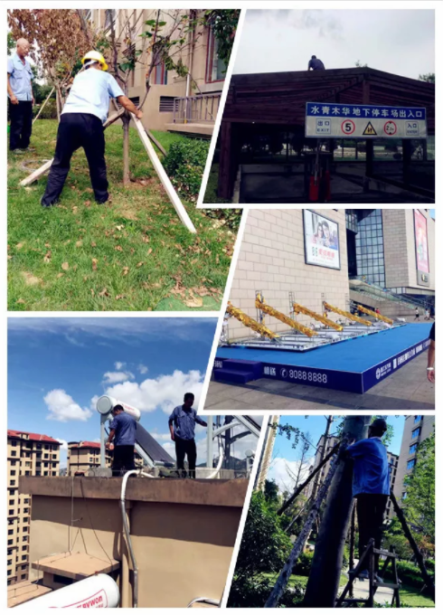 對綠植、天臺太陽能及容易刮倒的廣告牌進行穩(wěn)固排查。