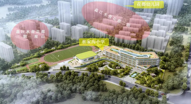 小學是孩子興趣愛好、良好性格培養的關鍵時期。一墻之隔的崔家溝小學,青山掩映下猶如一座森林之畔的奇幻城堡,現代流線型教學樓、綠茵運動場、繽紛藝體館,用寬闊的空間和柔和的色彩,帶領孩子認知精彩世界。