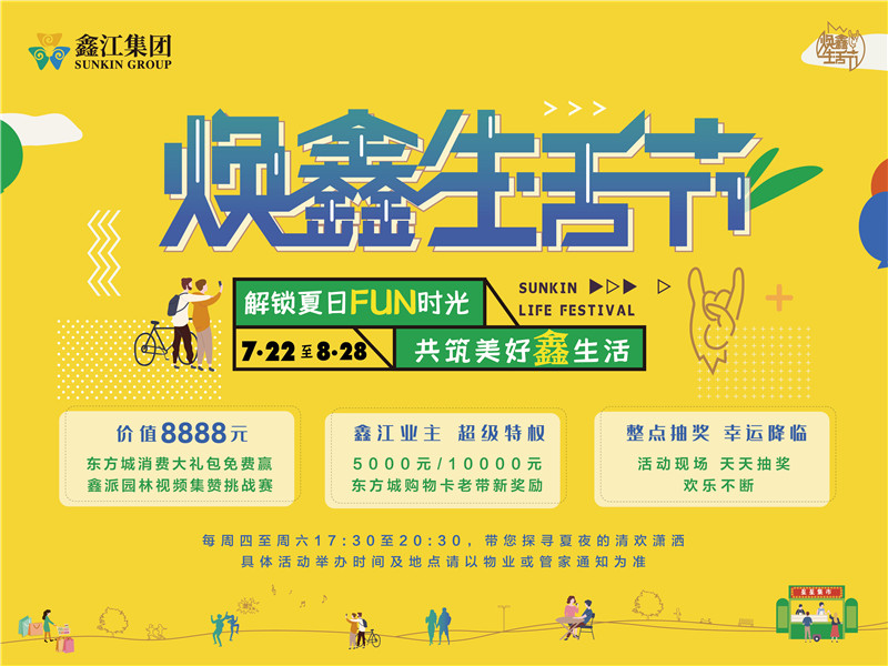 7月22日至8月28日,一場鑫江業主專屬的煥鑫生活節將打破夏日的沉寂,為業主家人們送上一場夏夜盛會。