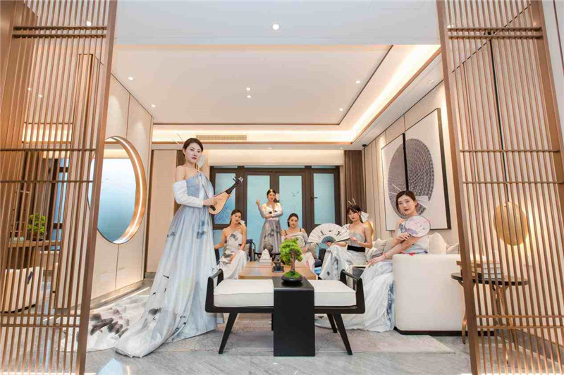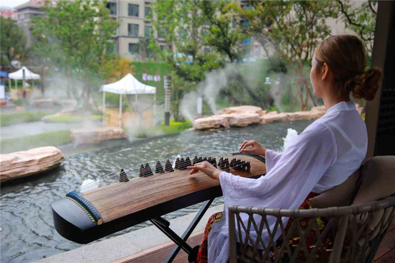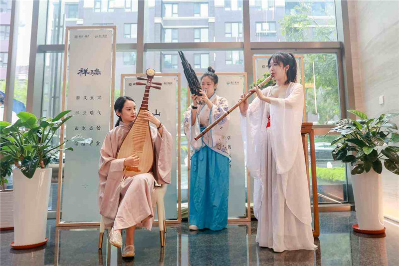 開放活動現場,一陣陣撩人心弦的琴聲引眾多人駐足,優雅古典的音樂與傳統舞蹈表演,那身韻合一的搖曳身姿,與此景融為一體,仿若穿越到古時。而“禮樂”正是中國禮制文化的重要組成部分,通過“禮”教與“樂”教,形成了中國古代完善的禮樂制度。鑫江·瑞府再現“禮樂”盛景,古箏、琵琶、笙、簫、古琴、傳統舞蹈,于自然之中完美演繹,用最詩意的方式,開啟了一場中式美學的賞鑒之旅。