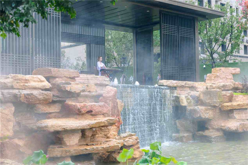 傳承宋代美學與現代建筑精髓,鑫江·瑞府將人文底蘊與現代國際審美潮流深度融合,形成獨樹一幟的“鑫派園林”。多維立體水系,打造山泉——石灘——清溪——疊瀑——歆湖等形態更加豐富的水景,詮釋真正的自然之美;高綠植量覆蓋,烏桕、紫薇、泰山松等名貴苗木全冠移植,一院擁攬春華秋實;遵循古法匠制,尋品質上乘泰山石,超30年經驗匠人指導堆砌,營造更加純粹的中式園林。