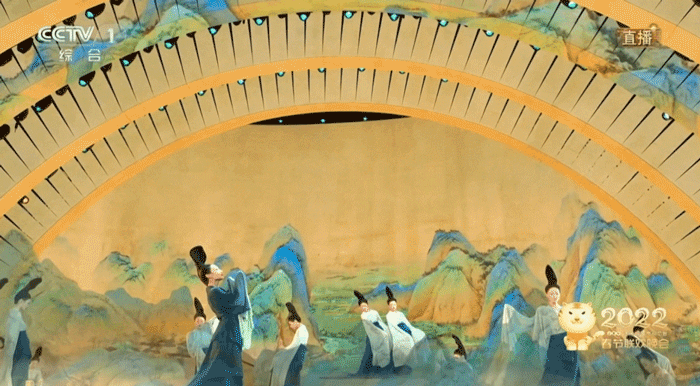 發(fā)髻高聳、水袖輕甩、蓮步輕移,隨著光影變換,最終融為連綿的青綠色山巒……