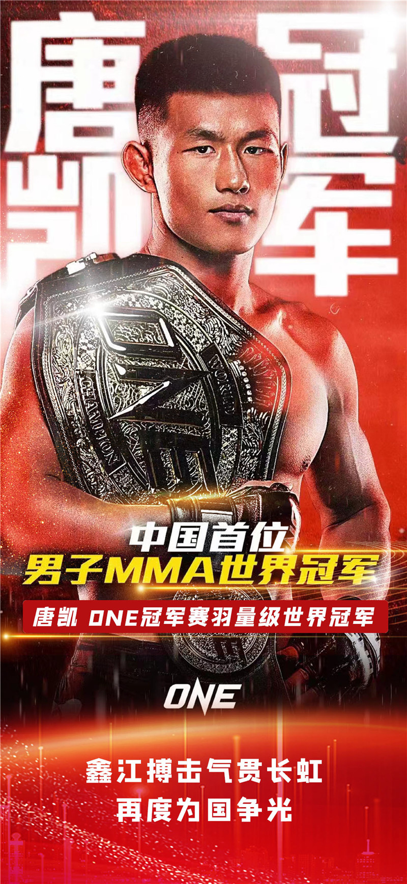2022年8月26日,鑫江戰(zhàn)將唐凱在ONE羽量級(jí)世界冠軍斬獲金腰帶,為祖國再次爭光!