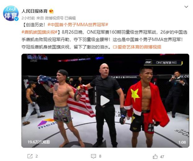 2022.8.26 唐凱 ONE冠軍賽 羽量級(jí)世界冠軍
