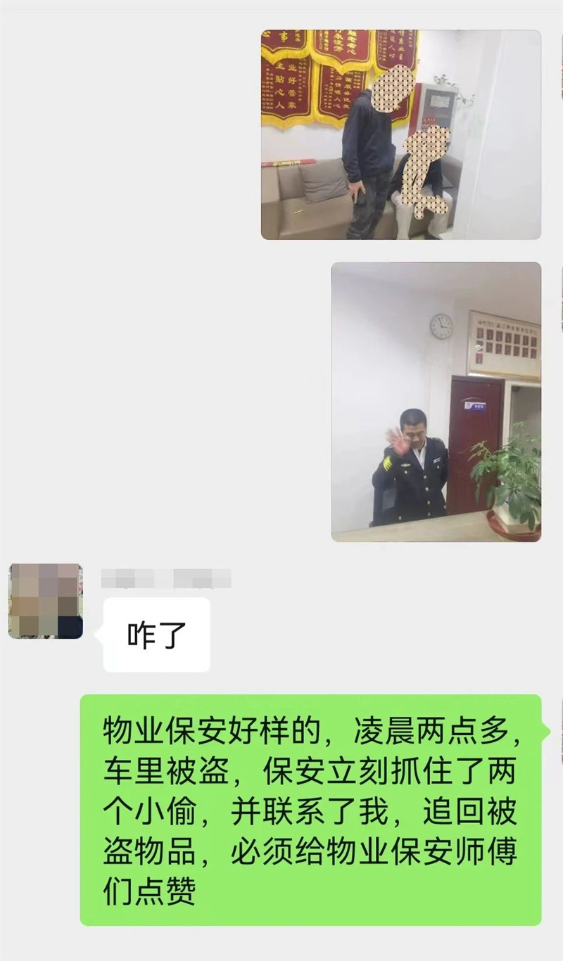 業主對物業保安及時阻止盜竊的舉動表示十分感謝,為鑫江物業保安工作點贊!