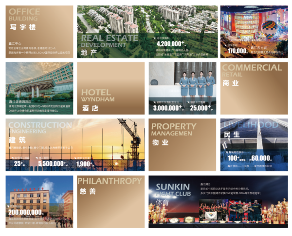 鑫江集團成立于1995年,以助力城市綜合發展、提升高質量美好生活品質為企業己任,是一家集地產、寫字樓、商業、酒店、物業、建筑、體育、民生、慈善于一體的多元化集團企業,2018年企業銷售值突破101億元,納稅約7.03億元。