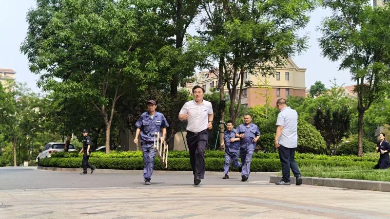 01 消防應(yīng)急演練 模擬突發(fā)火情,重點檢驗初期火災(zāi)撲救、疏散引導(dǎo)、消防設(shè)施聯(lián)動及緊急救護(hù)流程。鑫江物業(yè)工作人員反應(yīng)迅速,滅火器操作規(guī)范,疏散路線清晰高效,充分體現(xiàn)了日常訓(xùn)練的扎實功底。